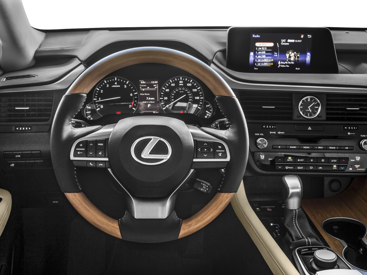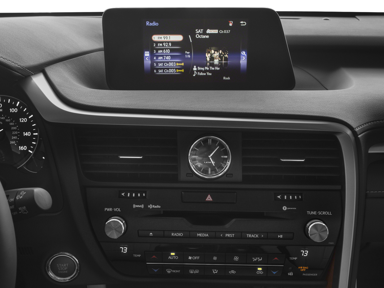 - Includes navigation system with 12.3-inch screen and remote touch controller, advanced casual-language voice recognition for navigation and audio, DVD/CD player, 12-speaker Lexus Premium Sound System, Lexus Enform App Suite (Destination search, Yelp, iHeartRadio, Facebook Places, MovieTickets.com, OpenTable, Pandora, Slacker, Stocks, Fuel Prices, and Sports), Lexus Enform Destinations, and dual-zone climate control.