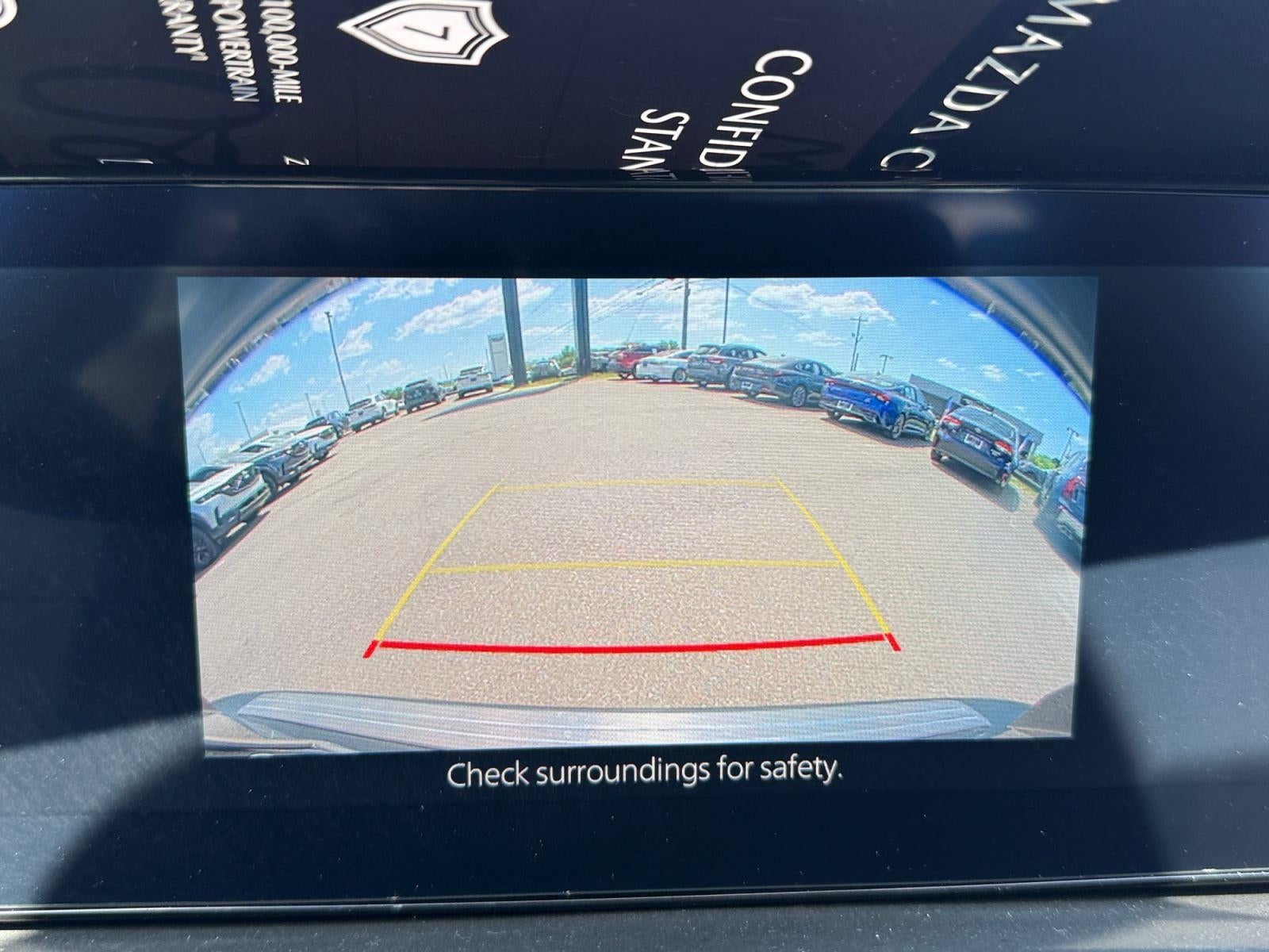 - The vehicle is equipped with a camera that displays an image of the area behind the vehicle on an interior display.