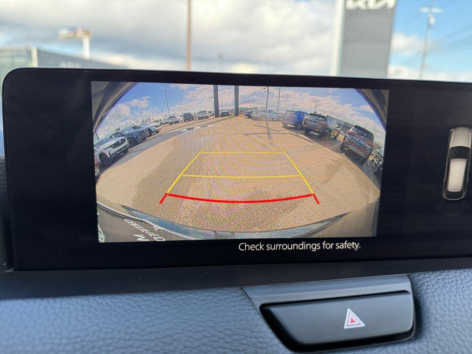 - The vehicle is equipped with a camera that displays an image of the area behind the vehicle on an interior display.